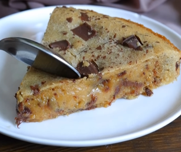 Potom dodajte brašno, promešajte pa dodajte čokoladu i ponovo promešajte. Sipajte testo u kalup premazan puterom i izravnajte ga kašikom. Pecite najmanje 15 minuta na 190 stepeni.