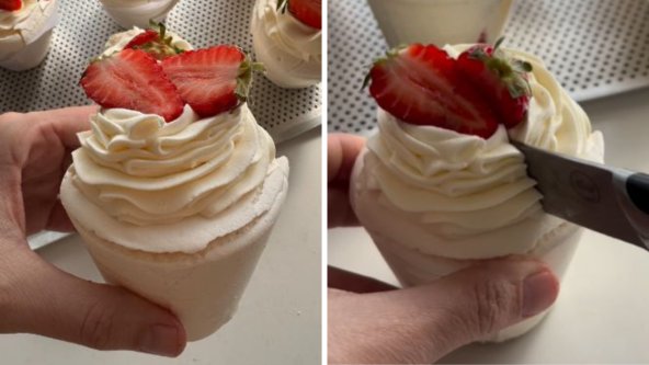 Kada se prohladi krem, napunite beze korpice i ukrasite ih šlagom i crvenim voćem. Možda ćete želeti da napravite i mafine sa kakaom i kafom.