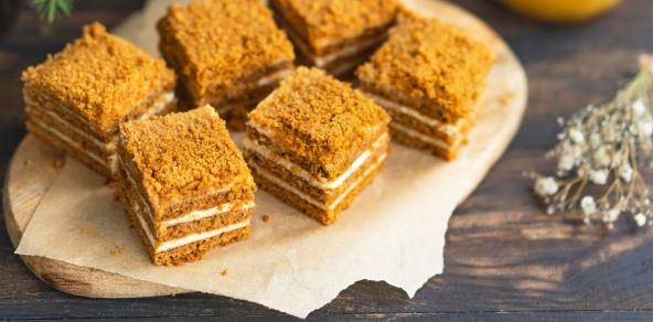 Za ovaj kolač umutite mast, šećer, med, jaja, mleko i sodu bikarbonu. Dodajte brašno pa umesite testo i podelite ga tri dela. Tanko razvucite svaki deo i pecite u rerni na 200 stepeni dok kore ne porumene. Potom napravite fil tako što ćete da pomešate griz i malo mleka. Preostalo mleko i šećer ostavite da provri. Kada skuvate griz, ostavite da se prohladi pa sipajte u njega margarin i sok limuna.