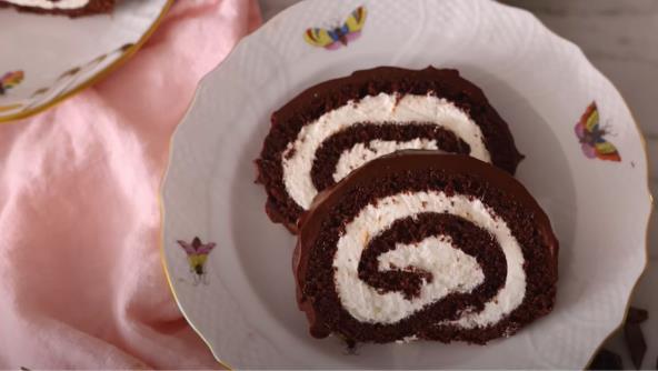 Kako biste napravili rolat, zagrejte rernu na 176 stepeni. Podmažite pleh za pečenje puterom. Dno obložite papirom za pečenje i namastite papir. U posudi umutite belanca sa polovinom šećera na velikoj brzini, oko 5 minuta. U drugoj velikoj posudi pomešajte žumanca, preostali šećer, ulje, ekstrakt vanile i so. Mutite na velikoj brzini dok smesa ne postane svetla i pahuljasta, oko 2 minuta. Prosejte brašno, kakao prah i prašak za pecivo u smesu žumanca i umutite na maloj brzini dok se ne sjedine.