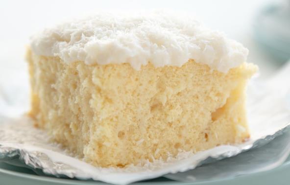 Završite dodavanjem kokos pahuljica i promešajte lopaticom dok se ne sjedini. Nemojte preterano da mešate. Testo ravnomerno rasporedite u pripremljeni kalup za tortu. Poravnajte vrh i lagano spustite kalup za torte na pult da biste uklonili sve mehuriće vazduha. Pecite 28 minuta ili dok čačkalica ne bude čista ili sa nekoliko vlažnih mrvica. Ostavite patišpanj da se ohladi u kalupu 20 minuta, pre nego što ga pažljivo okrenete na rešetku da se potpuno ohladi.