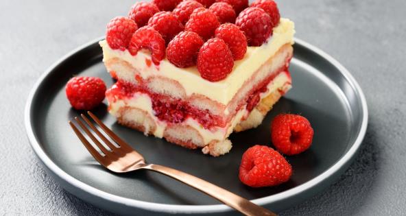 Piškote natapajte u sok pa ređajte na pripremljeni kalup. Zatim ih premažite sa polovinom smese od kisele pavlake. Preko toga stavite voće po izboru, na primer maline. Polovinu smese šlaga sa čokoladom stavite preko voća. Zatim stavite red piškota, pa premažite drugom polovinom smese sa kiselom pavlakom. Preko te smese stavite bananu iseckanu na kolutove.