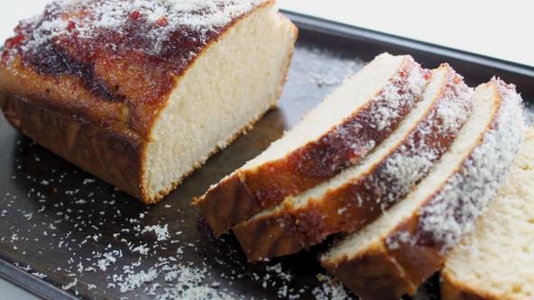 Po želji premažite topli kolač džemom i pospite prženim kokosom za dodatnu aromu. Kolač je savršen uz popodnevnu kafu ili čaj, a može se dodatno obogatiti s malo rendane čokolade.