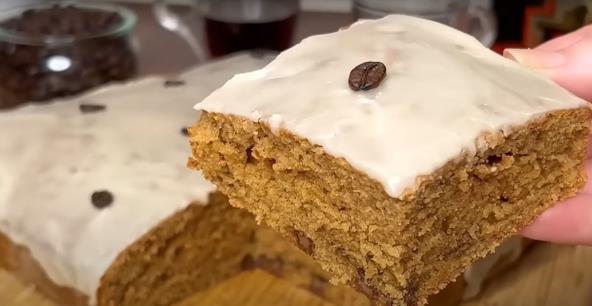 Nakon toga napravite glazuru tako što ćete da pomešate šećer u prahu i kafu. Dobro promešajte i kada je kolač ohlađen, prelijte ga glazurom i ukrasite zrnima kafe. Uživajte! Možda ćete želeti da napravite i kolač sa švapskim sirom.