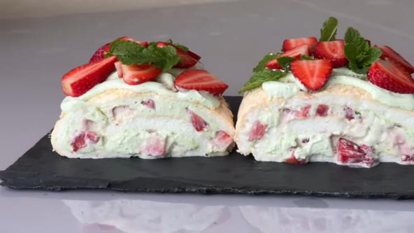 Ovaj lagani rolat od puslice savršen je spoj prozračne kore, osvežavajućeg fila sa mentom i sočnih jagoda. Pravi je izbor za tople dane kada želite desert koji izgleda svečano, a topi se u ustima.