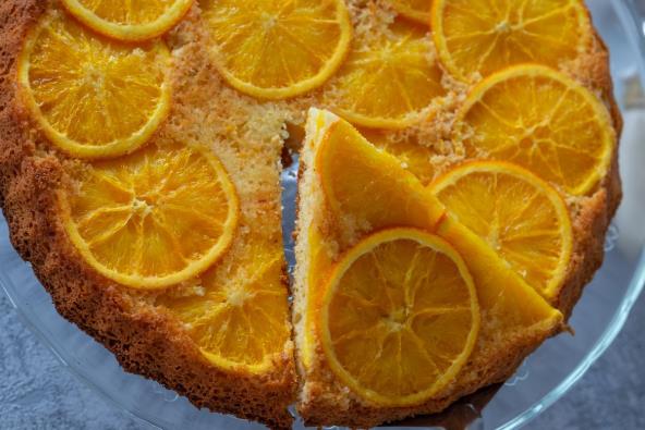 Kada je kolač gotov, izvadite ga iz rerne, ostavite 10 minuta, a zatim ga izvadite iz kalupa na rešetku za hlađenje. Ostavite kolač da se potpuno ohladi pre nego što zagrejete sirup. Izbockajte vrh i ravnomerno prelijte sirup preko kolača, a zatim postavite kriške pomorandže za ukras. Uživajte! Možda ćete želeti da napravite i kolač sa čia semenkama i limunom.