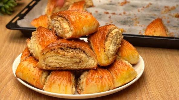 Ovi starinski kolačići sa puterastim testom i bogatim filom od oraha tope se u ustima. Testo se puni, urola, spljošti i seče u oblik trougla — jednostavno, a efektno i ukusno.