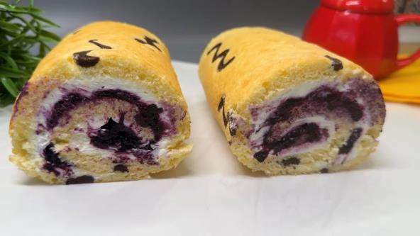 Mek, vazdušast i osvežavajuć rolat sa domaćim džemom od borovnica i laganom kremom od sira – savršen za posebne prilike ili kao desert uz popodnevnu kafu.