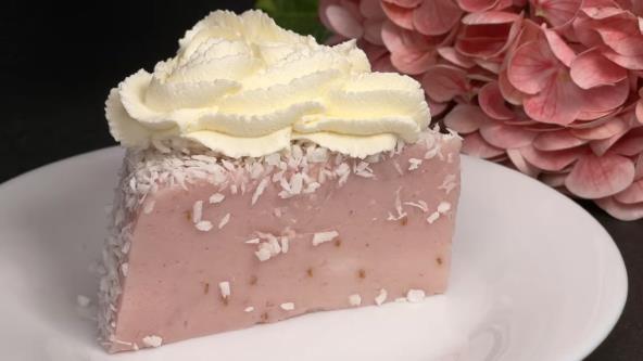 U kalup po izboru sipajte pripremljenu smesu. Ostavite da se stegne. Nakon toga izvadite kolač na tacnu i pospite kokosovim pahuljicama po vrhu. Posebno umutite slatku pavlaku sa 50 g šećera pa kad isečete kolač svako parče ukrasite šlagom.