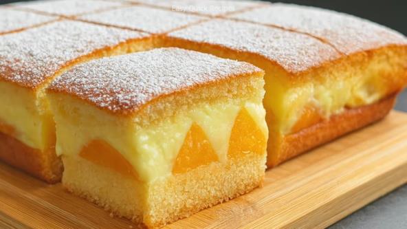 Sočan, slojevit kolač sa osvežavajućim breskvama, nežnim biskvitom i domaćim kremom od vanile – savršen spoj za letnje poslepodne uz šolju kafe ili čaja.