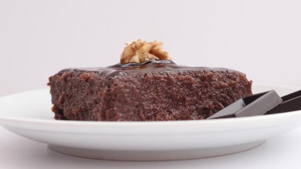 Ohlađeni kolač prelijte čokoladnim ganašem i ostavite da se stegne pre sečenja i serviranja.