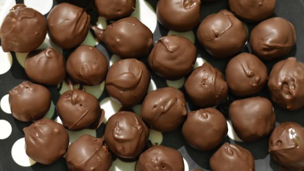 Otopite čokoladu za glazuru, dodajte ulje i dobro promešajte dok ne postane glatka i sjajna. Svaku kuglicu umočite u glazuru, ocedite višak i vratite na papir za pečenje, pa ostavite da se čokolada stegne u frižideru. A ovde pogledajte recept za Baron tortu.