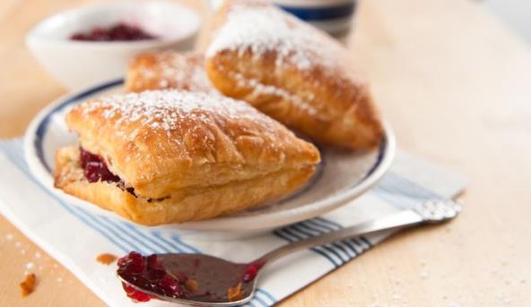 3. Na kraju rastanjiti na debljinu od jednog centimetra, seći kvadrate, filovati džemom, pa preklopiti, kao malu knjigu. Peći salčiće na 200 stepeni oko pola sata.