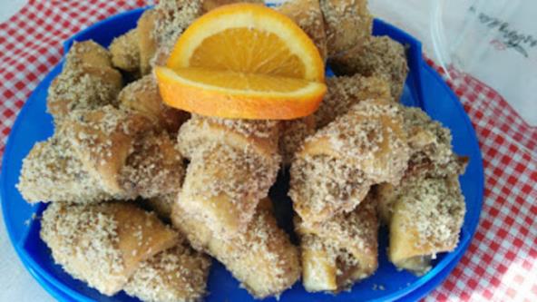 3. Dok se kiflice peku skuvati sirup od šećera i vanile pa pečene umakati u sirup i valjati u mlevene orahe. Najbolje su kad ostoje 2 dana pa je potrebno ako ih pravite za posnu slavu napraviti jedan dan ranije. Ako nemate orah može i kokos.