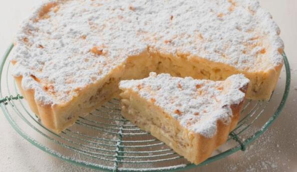 6. Kad je kolač gotov ostavite ga u kalupu desetak minuta, a potom ga okrenite na tanjir za posluživanje tako da jabuke budu na vrhu.