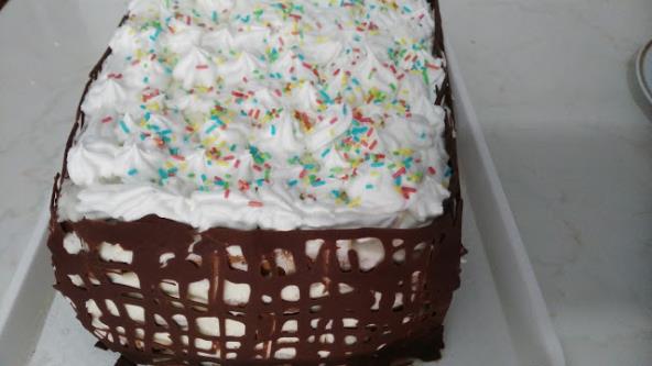 Redjati tamnu koru, pa krema, zatim svetla kora pa krema, tamna kora fil i svetla kora i ostatak fila. Tu je filovanje pite gotovo. Kako će te je dalje ukrasiti to je do vaše mašte...Ja sam je ukrasila ovako
