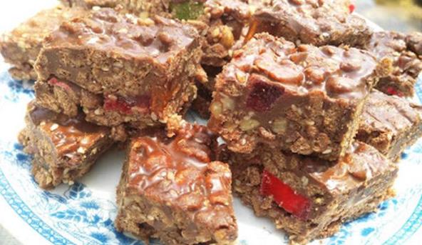 1. Margarin i šećer staviti u šerpu da se dobro istopi pa dodati čokoladu. Kad se i ona istopi skloniti sa šporeta dodati med i sve ostale sastojke i dobro izmešati.