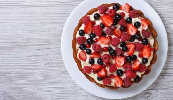 Poređajte jedno pakovanje piškota u pleh, pa preko toga stavite voće koje ste izabrali, zatim pomešajte dobro 4 pavlake sa 200 gr šećera i stavite preko voća.