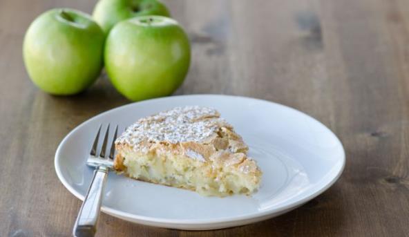 4. Kad je kolač gotov, ostavite ga u kalupu desetak minuta, a potom ga okrenite na tanjir za posluživanje tako da jabuke budu na vrhu. Pospite šećerom u prahu i cimetom i uživajte!