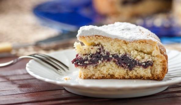3. Jedan deo napola ispeći ( 180 C .), pa namazati džemom, dodati preko džema drugu smesu i vratiti da se kolač ispeče.