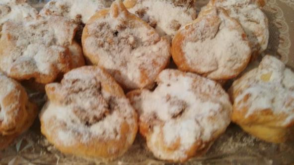 Jabuke očistiti i izrendati dodati pola cimeta i vanilin šećer i mlevene orahe kao i 100 gr šećera. Sve dobro izmešati. Testio oklagijom razviti za pola sm seći kvadrate pa u svaki kvadrat stavljati po kašičicu jabuka saviti sve krajeve i šakom stisnuti u gornjem delu kao što je prikazano u Videu. Slagati u pleh. Peći na 180 stepeni C oko 30 min. Posuti prah šećerom