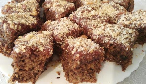 Sipati u pleh veličine 26 cm u koji ste stavili pek papir. Peći na 200 stepeni 40- 45 min. Na polovini pečenja pokriti folijom. Vruć kolač premazati džemom po izboru i posuti mlevenim i seckanim orasima.