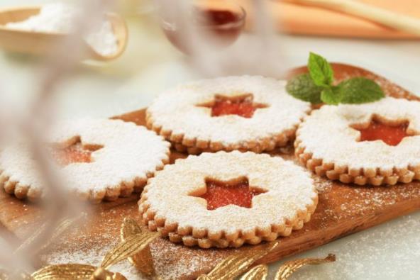 2. Spajati džemom po dva kolačića (puni i šuplji) i posuti šećerom u prahu.