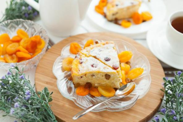3. Izmešajte svež i postan sir. Razbijte jaje, odvojte belance od žumanceta. Žumance zatim izmešajte sa 4 kašike pavlake i 2 kašike šećera. U sir umešajte preostalo jaje, belance, pavlaku, šećer, rastopljeni puter, srž vanile, gustin, so i suvo grožđe.
