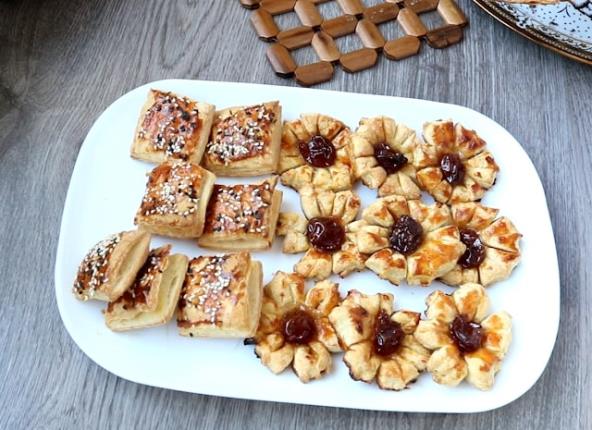 Za slane zalogaje testo razvući, pa iseći na kockice i viljuškom izbockati i premazati žumancetom, a za slatke testo takođe razvući i vaditi čašom.