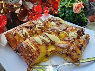Rernu uključiti na 220 stepeni. Hleb malo oklagijom izvaljati i premazati kremom. Jaja izmutiti i dodati 200-300 ml mleka. Sve izmutiti.