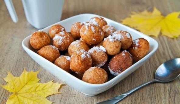 2. Testo vadite velikom kašikom i pecite u dobro zagrejanom ulju. Rumene uštipke uvaljajte u šećer u prahu i služite tople.