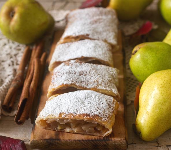 Ukoliko niste ljubitelj modernih slatkiša i više volite tradicionale kolače, onda napravite štrudlu. Ovaj jednostavni kolač od testa i fila, vrlo je omiljen među svim uzrastima, a i naše bake su znale često da ga prave. Za fil najviše se uzimaju mak, orasi, jabuke ili džem. Za ovaj recept ništa od toga vam nije potrebno za fil, jer glavni sastojak su kruške. Tako da ako volite ovo voće, onda ćete biti oduševljeni ukusom ove štrudle, a kako bi bila još mekša dodajte i suvo grožđe. Na kraju pospite je šećerom u prahu i poslužite.