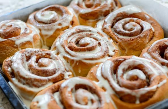 Dok se rolnice peku napravite glazuru. Umutiti omekšali maslac sa krem sirom, pa dodati šećer u prahu i opet dobro umutiti. Dodati jednu do dve kašike mleka, umutiti. Vrele rolnice obilno premazati ovom glazurom. Videćete dok budete kod poslednjih kako su se prve otopile i sve je sočno. Možete odmah da poslužite. Kada se ohlade, ta glazura se stegne, pa bude kao na onim američkim krofnama, šećerna glazura.