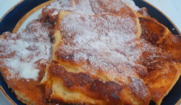 3. Peći na 200 stepeni C oko pola sata da lepo porumeni. Posuti šećerom u prahu. Isecite kad se malo prohladi i sladite se.