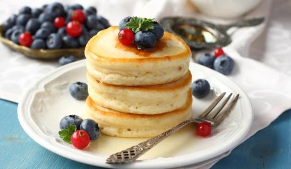 4. Sipajte testo u tiganj, koristeći oko 1/4 šolje za svaku palačinku.