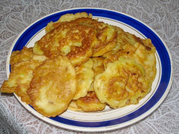 Jabuke oljuštite, pa ih nasecite na kolutove debljine oko pola centimetra i izdubite deo sa košticama. Stavite ih u činiju, pa ih prelijte sokom od limuna da ne bi pocrnele. Cela jaja ulupajte sa šećerom da se zapene, a možete i da ih umutite mikserom. Postepeno dodajte mleko, brašno, prašak za pecivo i naribanu koricu limuna. Treba da dobijete smesu malo gušću od one za palačinke. Svaku krišku jabuke dobro umičite u dobijeno testo, pa ih spuštajte u tiganj u kome ste zagrejali ulje. Pržite ih sa obe strane po nekoliko minuta, dok ne dobiju zlatno-žutu koricu. Vadite ih na papirni ubrus kako bi se ocedile od viška ulja. Kada se ohlade pre služenja ih pospite sa malo šećera u prahu.