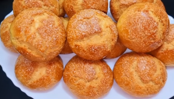 Umutite jaje, ulje, šećer i vanilin šećer. Zatim dodajte jogurt, promešajte, pa sipajte brašno i sodu bikarbonu. Umesite meko testo. Podelite ga na 16 delova i oblikujte loptice. Jaje umutite sa mlekom i premažite pogačice koje ste poređali na pleh obložen pek papirom. Pospite šećerom i pecite na 180°C oko 25-30 minuta.