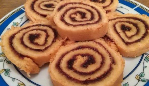 4. Odviti koru iz krpe i premazati džemom. Saviti u rolnu, i rolat je spreman za sečenje.