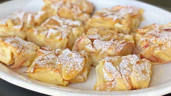 Pecite pitu sa jabukama na 190°C oko 40 minuta. Pospite šećerom u prahu i služite.