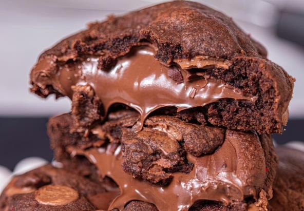 Kako biste napravili ove keksiće, od 240 g Nutele na plehu obloženom papirom za pečenje napravite kuglice tako da svaka bude veličine 2 kašičice. Zamrznite kuglice dok ne postanu čvrste. Zagrejte rernu na 176 stepeni C. Obložite 2 pleha papirom za pečenje. Stavite puter, šećer i smeđi šećer u činiju miksera. Mutite dok ne postane mekano, oko 2-3 minuta.