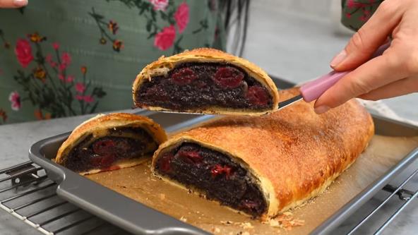 Miris maka i višanja vraća u detinjstvo, kad su se štrudle motale ručno i pekle za celu porodicu. Ova starinska poslastica u modernijoj varijanti, sa lisnatim testom, spaja bogat, orašast ukus maka i kiselkastu svežinu višanja. Idealna je kada želite nešto domaće, a brzo gotovo.