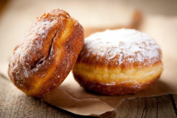4. Na polovini testa utisnuti krugove prečnika 6 cm uz pomoć čaše. U sredinu svakog kruga staviti kašičicu džema i preklopiti drugom polovinom testa. Pomoću iste čaše vaditi krugove. Ivice krugova će se tako zalepiti. Ostaviti oko 1 sat krofne na toplom da ponovo nadođu.