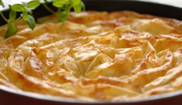 5. Prvu jufku umotajte u puž i stavite je na sred podmazane tepsije, pa svaku sledeću motajte oko nje. Ostavite pitu da se "odmori" 15 minuta, onda je zalijte umućenim jajima, mlekom i šećerom, pa je pecite dok ne porumeni.