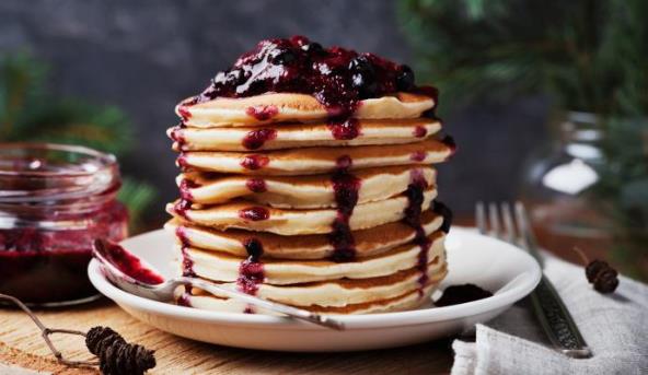 2. Zagrejte tiganj i nema potrebe da ga dodatno premazujete puterom. Pažljivo stavite jednu kašiku mešavine u tiganju. Kada vidite kako se mehurići pojavljuju na palačinkama okrenite ih. Palačinke pržite dok ne porumene i na drugoj strani. Zatim ih stavite u posudu i prelijte pažljivo vašim omiljenim prelivom ili džemom.
