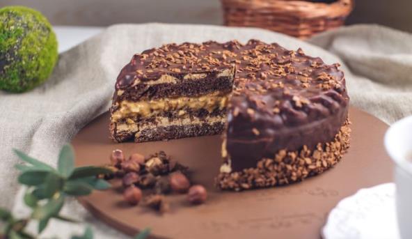 3. Preko ovog fila staviti još jedan fil: 350 grama šlaga umutiti sa kiselom vodom, pa dodati 250 grama pečenog tucanog lešnika i 100 grama crne rendane čokolade. Okolo ukrasiti šlagom.
