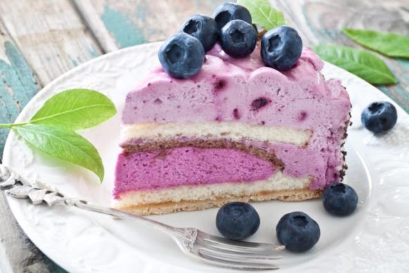 4.Odmrznite sladoled i u polovinu umešajte bobice. Na donju koru stavite sladoled od vanile, poklopite drugim biskvitom, pa stavite sladoled od borovnica. Kolač stavite na dva sata u zamrzivač.