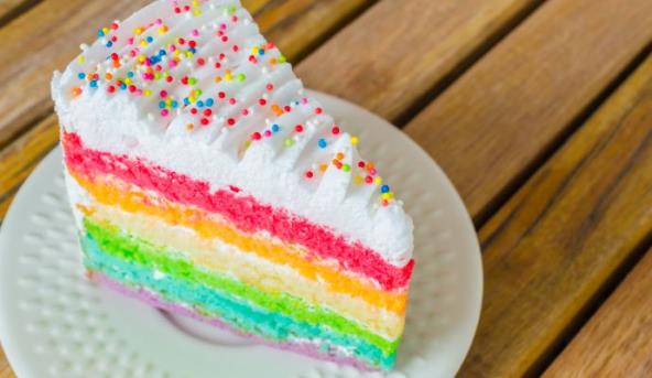 8. Ređajte ohlađene kore u boji jednu preko druge, a između njih filujte belim umućenim filom.