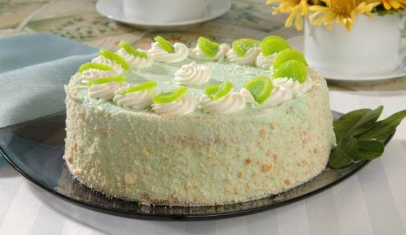 2. Orahe i šećer prelijte kipućim mlekom i umešajte rastopljen margarin. Iznova savijte rolat. Za žuti fil umutite žumanca sa šećerom, dodajte vanilu i puding, promešajte, dodajte mleko i kuvajte na laganoj vatri dok se ne zgusne kao puding. U ohlađenu masu umešajte rastopljen margarin. Rolat isecite na 21 parče i u kalup za tortu slažite: red rolata (7 parčića), red žutog fila i tako složite 3 reda. Tortu ukrasite umućenim šlagom, šlag kremom ili glazurom od čokolade, po želji.