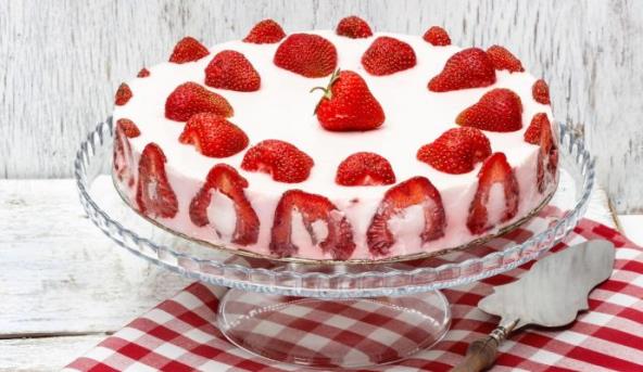 5. Smesu sipajte preko kore, ukrasite preostalim jagodama i tortu stavite u frižider da se hladi preko noći.