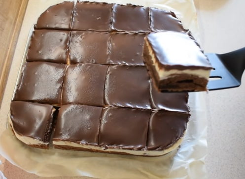Umutite penasto jaja sa vanilin šećerom i šećerom, pa dodajte ulje, brašno sa praškom za pecivo i kakao. Opet sjedinite mikesrom, pa sipajte u pleh koji ste obložili pek papirom. Pecite na 180°C oko 20 minuta. Pečenu koru prelijte sa mlekom i ostavite da se ohladi. Sastoje za fil umutite i sipajte preko ohlađene kore. Na kraju otopite čokoladu sa slatkom pavlakom, pa glazuru sipajte preko fila. Ohladite i isecite na kocke.